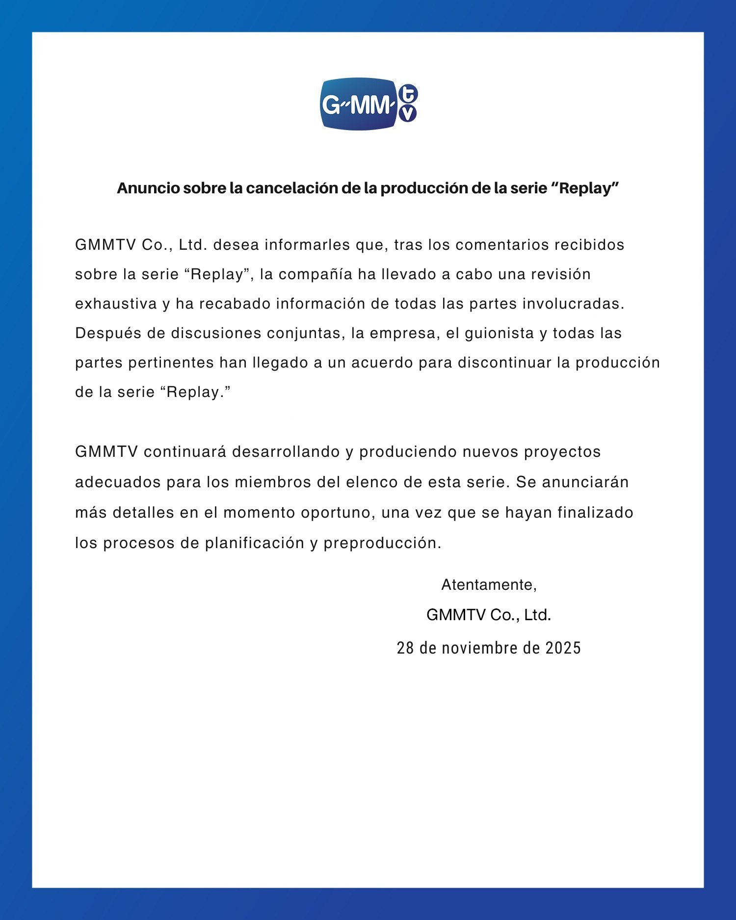 Desde su anuncio, ‘Replay’ fue quizás la producción más controversial del listado y por eso no sorprende que las cosas no hayan acabado de la mejor manera. La serie, que estaría protagonizada por las couples Tay-New, Pond-Phuwin y Joss-Gawin, fue cancelada el 28 de noviembre tras el feedback de la audiencia, debido a problemas relacionados con el origen de la historia en la que este BL iba a basarse.